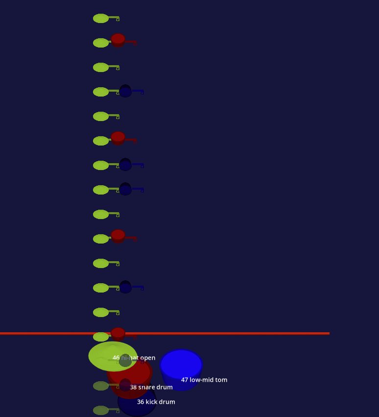 (MIDI track notes may not be in sync with a song mp3, one way is to create mp3 of the MIDI-file, to make sure notes are in sync).